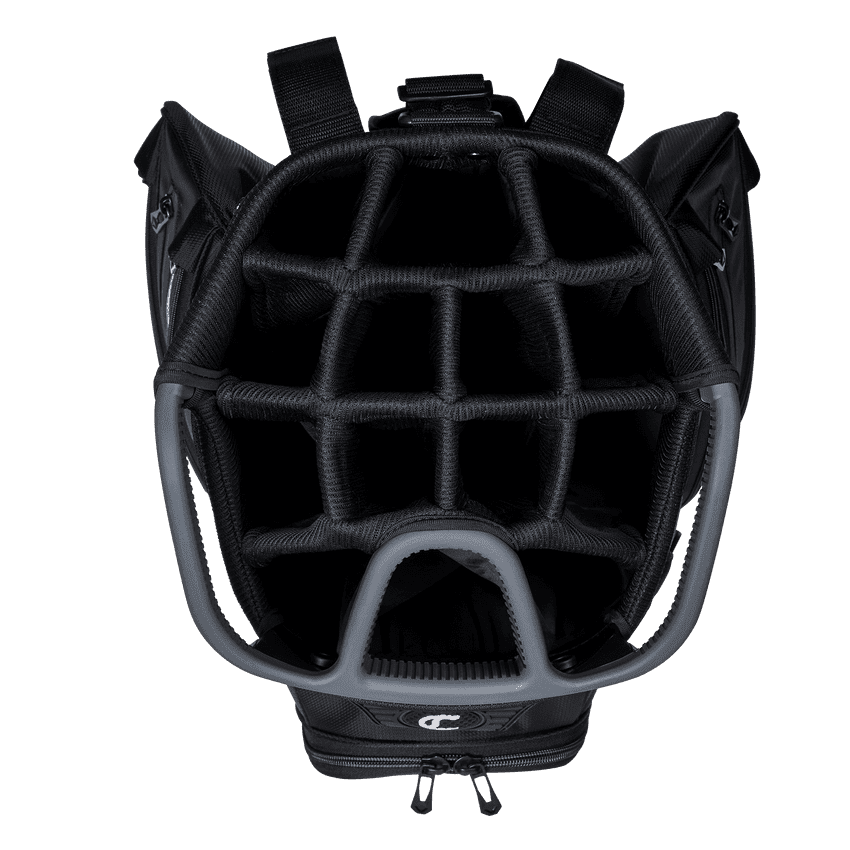 The Callaway Org 14 Golf Cart Bag is the ultimate cart bag that prioritizes storage, organization and club accessibility with its 14-way, arched top and multiple cart friendly features. The proprietary 14-way arched top optimizes access to clubs while the individual full-length dividers and separate putter well with TPE overmold for superior shaft protection. Trolley-friendly hook and loop straps secure the bag in place, preventing it from rotating on the trolley.