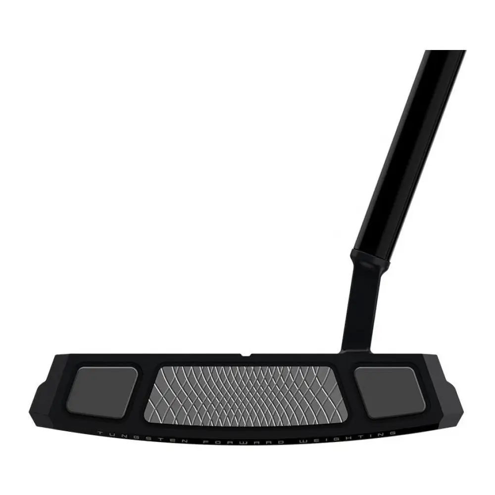 Frontline putters incorporate a forward centre of gravity with two Metal Injection Moulded (MIM) Tungsten weights in the face. This key aspect of Frontline results in increased stability and accuracy to help sink more putts as the ball will remain on a straight line, even on off-centre strikes.