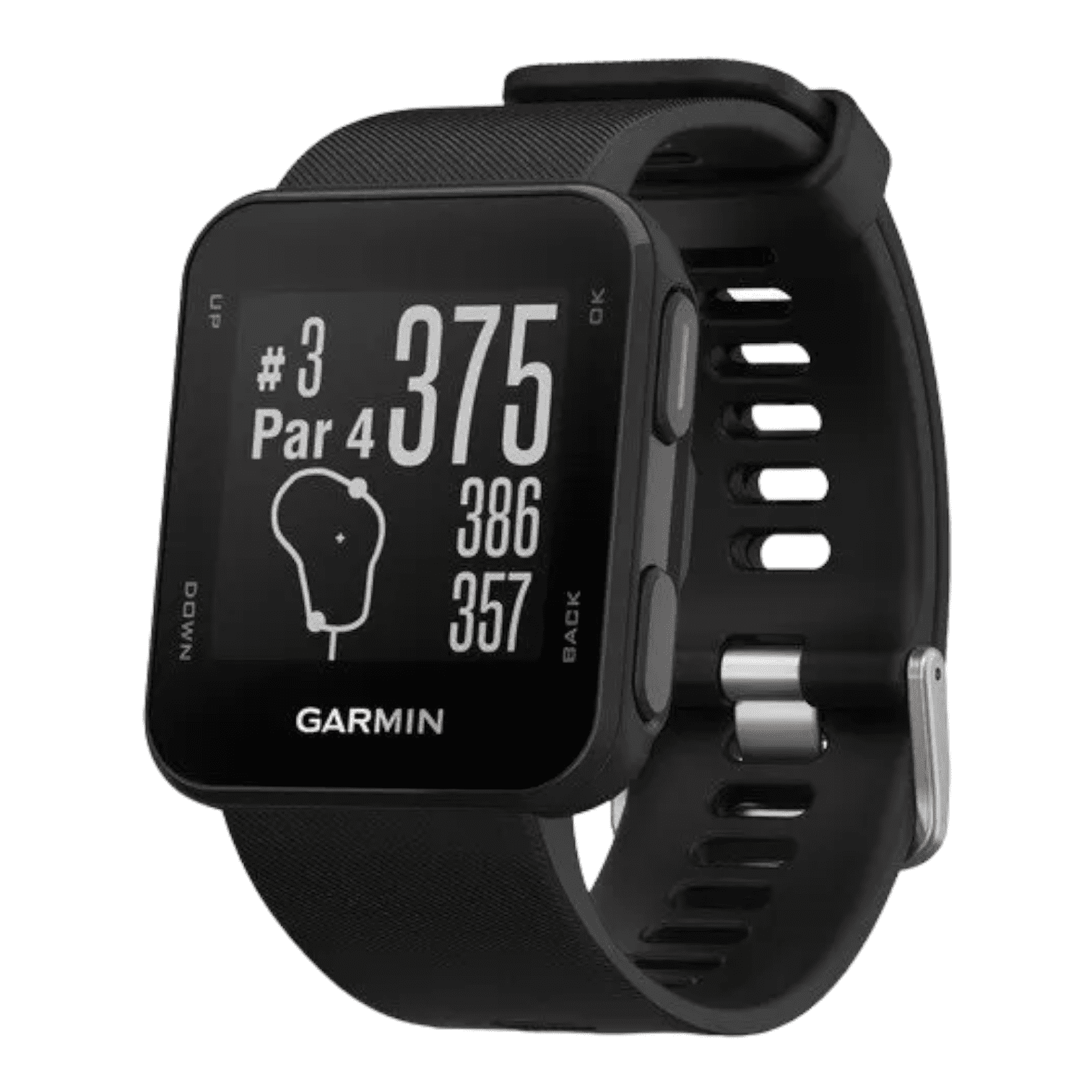 The Garmin Approach S10 GPS Golf Watch is designed for optimal precision, rendered with a high-resolution display that is legible in daylight. It offers access to accurate yardage info for more than 41,000 preloaded courses, including readings for the front, back and middle of the greens, plus hazards and doglegs. A scorecard on the watch provides a round summary, including the total distance and duration. Additionally, users can upload their scorecards to Garmin Express™ for long-term tracking. The rechargeable battery offers up to 12 hours of power in golfing mode.